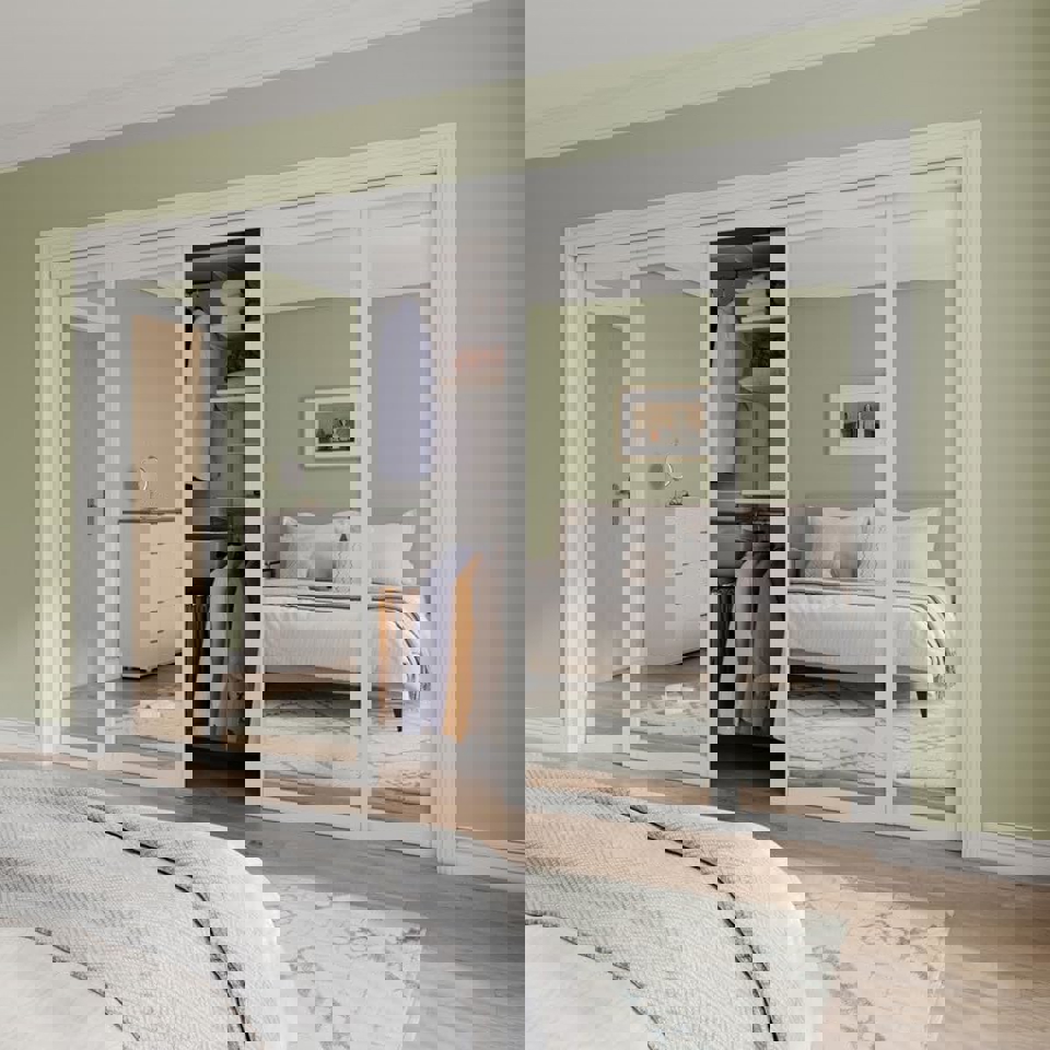 Our team installed this 4-panel, 2-track top-hung Aluminum Frame Room Divider with white laminated glass in Rancho Mission Viejo, California.