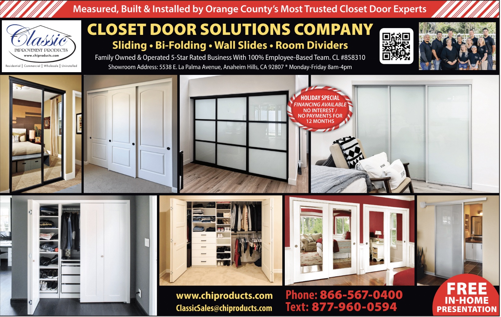 Classic Improvement Products — the #1 Closet Door Company in Orange County — is featured in Home Concepts Magazine arriving in your mailbox this week! As a trusted local family-run business for 23 years, we’re proud to showcase our premium, custom-made closet door and room-divider solutions.