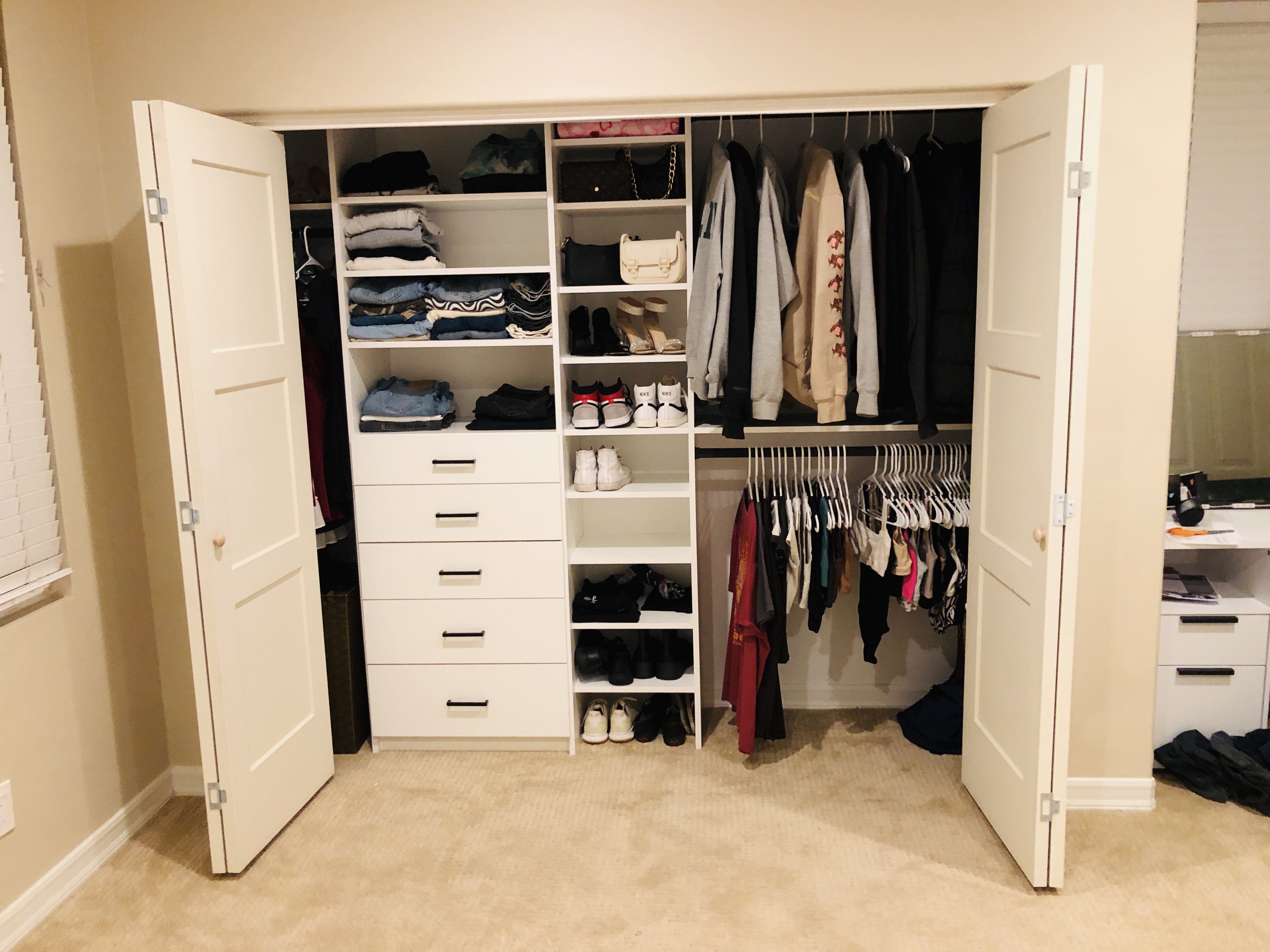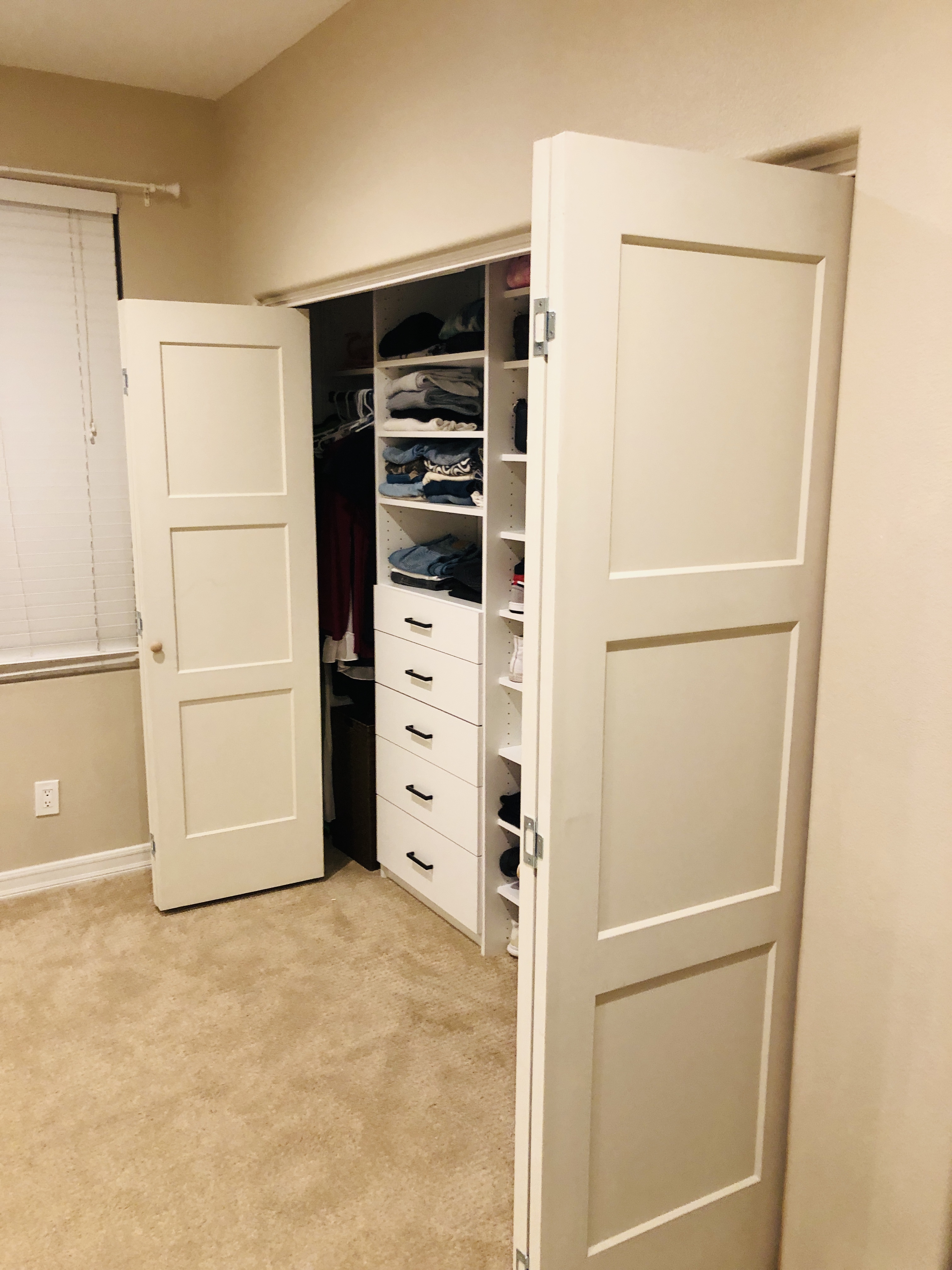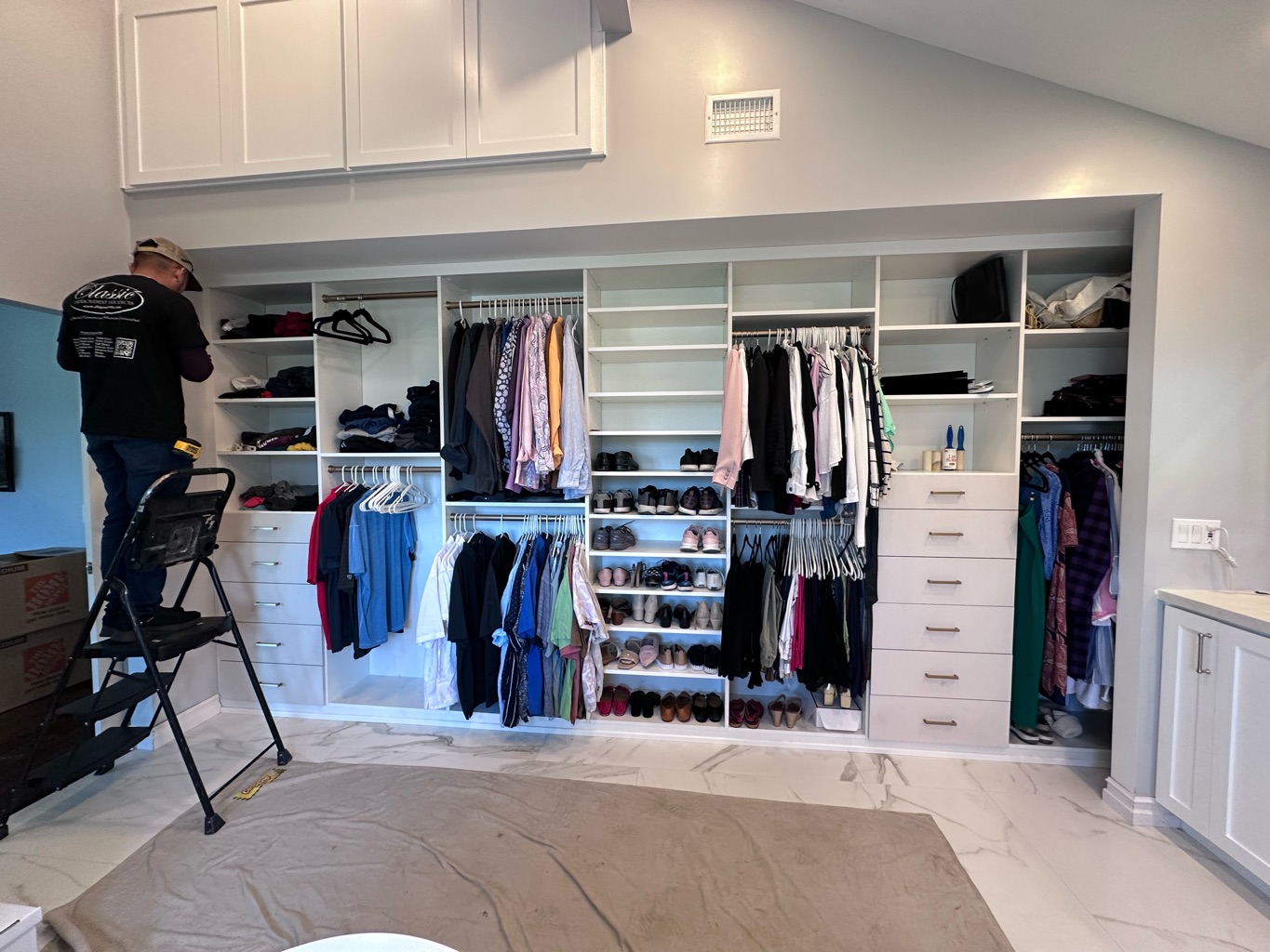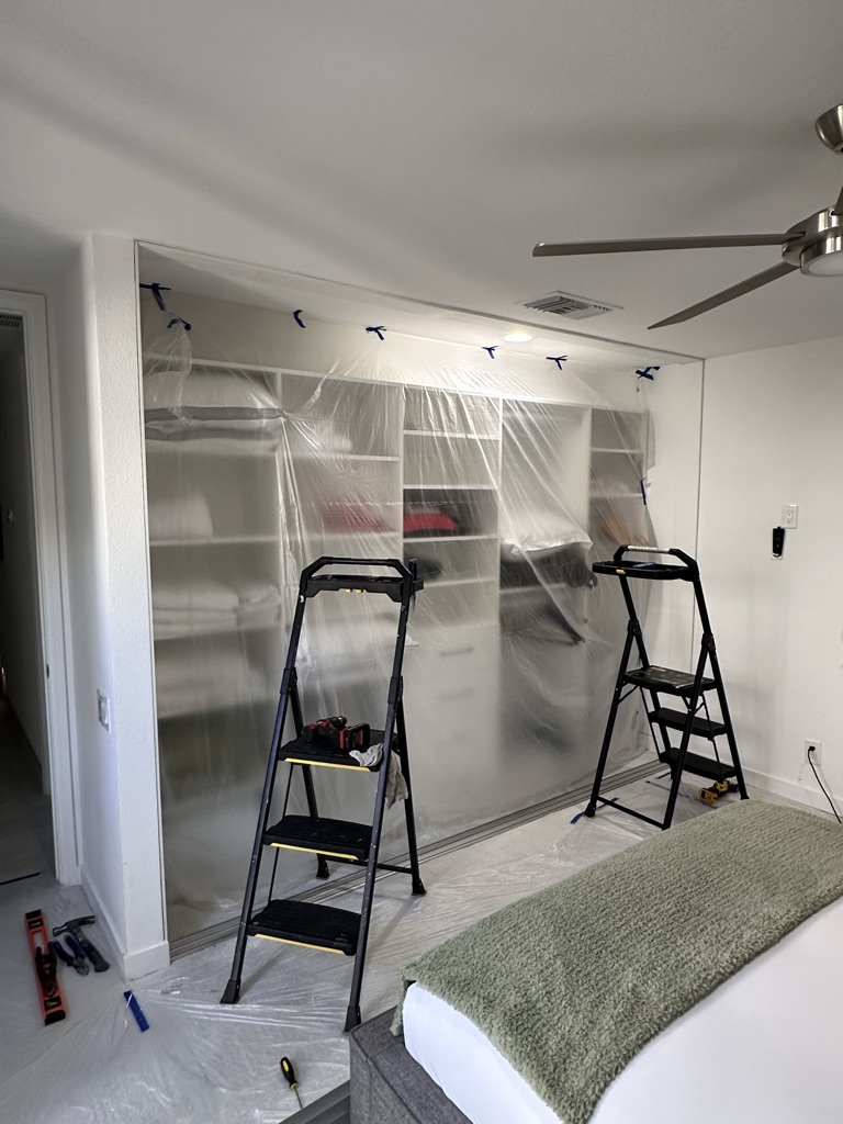 Before installation, we cover the inside of your closet with plastic to protect clothing, shelves, and personal items from dust or damage.