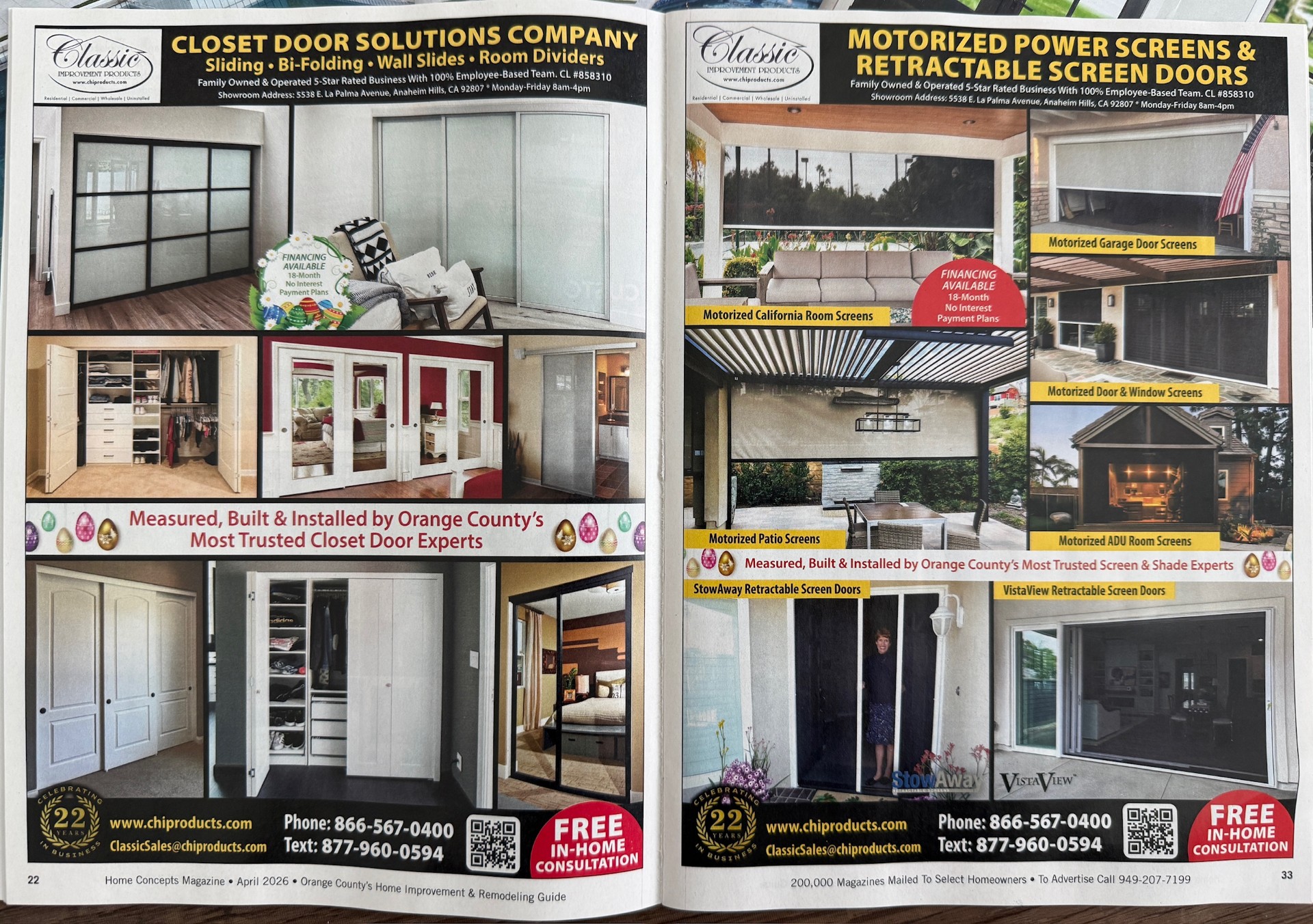 This issue is packed with inspiration for homeowners looking to upgrade their space, and we’re proud to be featured as a trusted provider of custom Closet Doors and Motorized Screen solutions.