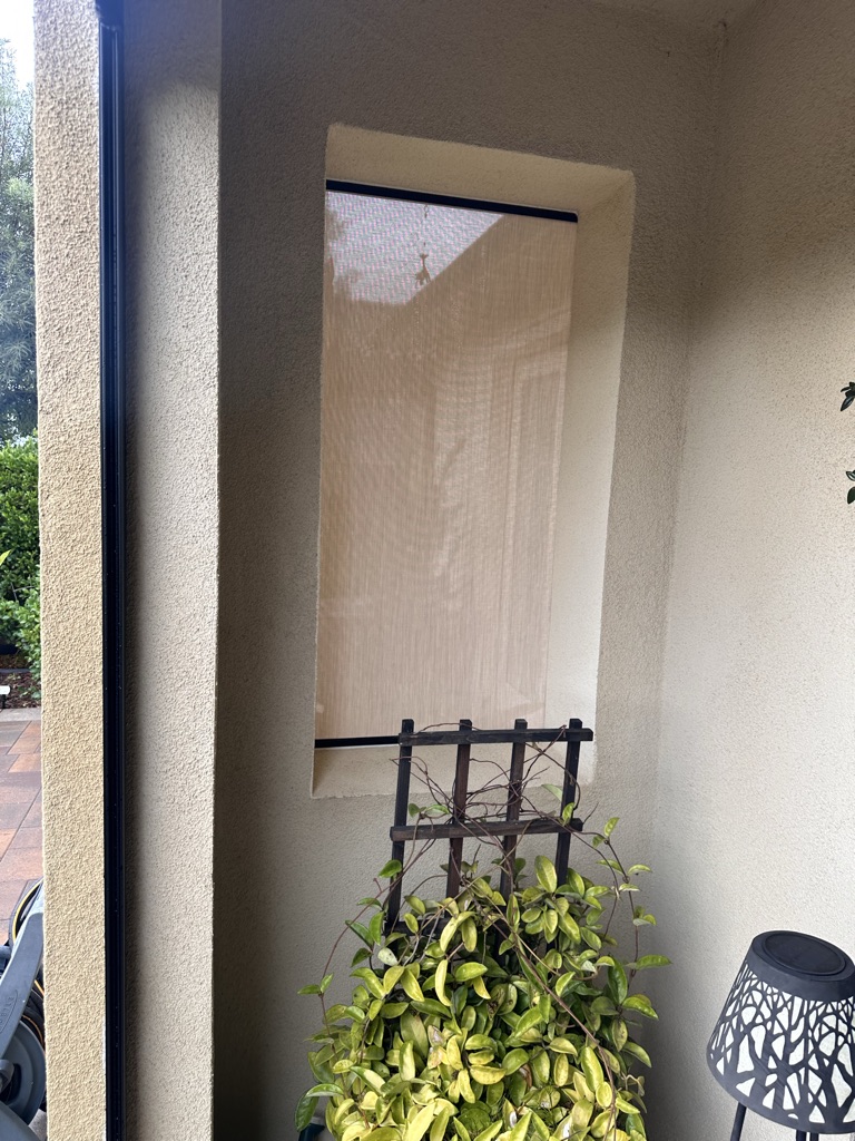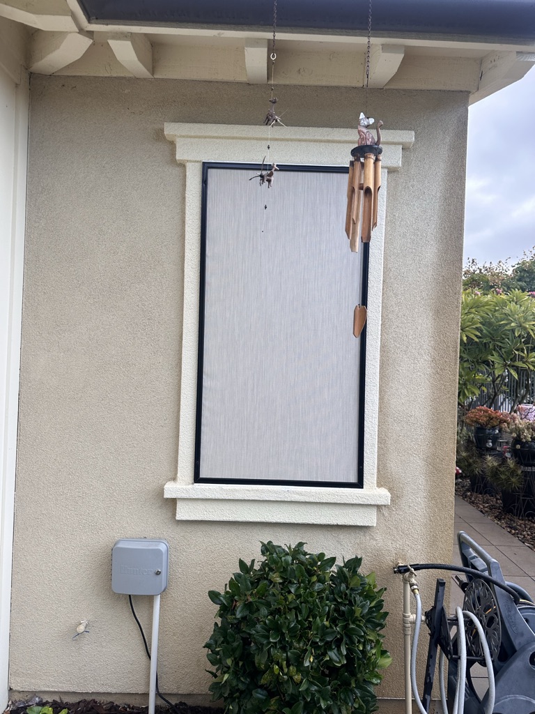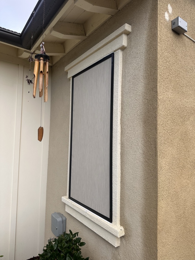 If your patio has open stucco cut-outs and you’re planning—or already installing—Motorized Power Screens, fixed 1” frame solar screens are the missing piece.